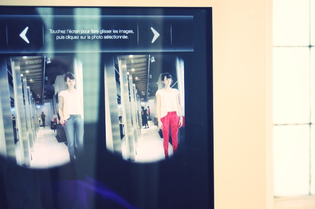 Gros plus aussi, l’appareil photos disposé à côté du miroir et que vous pouvez enclencher pour voir vraiment à quoi vous ressemblez, dans ce jean.