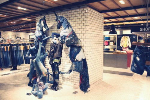 Une vendeuse s’approche de moi et me propose de m’aider dans ma quête. Elle commence par me demander quel type de jean je veux. Comme j’ai envie de jouer, je l’invite à me proposer des modèles qui mettraient ma silhouette en valeur (comment ça, je suis une peste ?). Helin ne bronche pas. Mieux : après avoir scanné visuellement mon gabarit, elle me pose une batterie de questions pour comprendre ce vers quoi tendent mes goûts. A l’issue de quoi elle sélectionne une bonne dizaine de jeans et m’accompagne dans les cabines. Là encore, le mise en scène est ultra léchée : les cabines sont spacieuses, baignées de la lumière du jour. Un joli miroir et des fauteuils de cinéma dotent les lieux d’une personnalité affirmée.