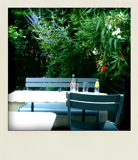 (sur la photo, terrasse du resto-bar Chez Julien, 1, Rue du Pont Louis-Philippe dans le 4ème. Préférez lui l’Ebouillanté, à quelques mètres de là : bien meilleur marché et surtout, l’accueil y est mille fois plus agréable !)
