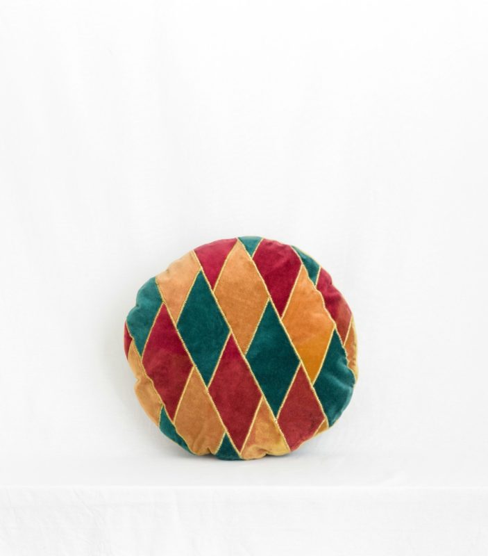 - La housse de coussin ronde en velours rouge et vert Jamini Design