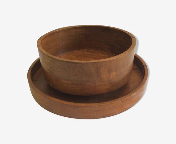 - Le lot d’un saladier et d’une coupe en teck Selency