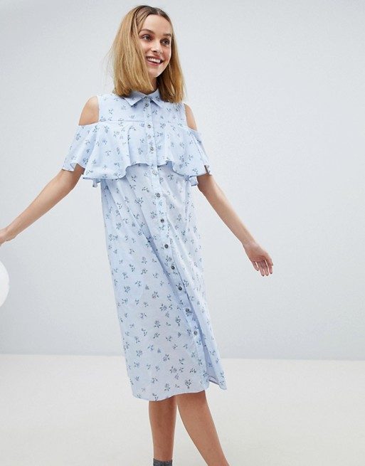 - Robe bleu mi-longue à volants Paul & Joe Sister