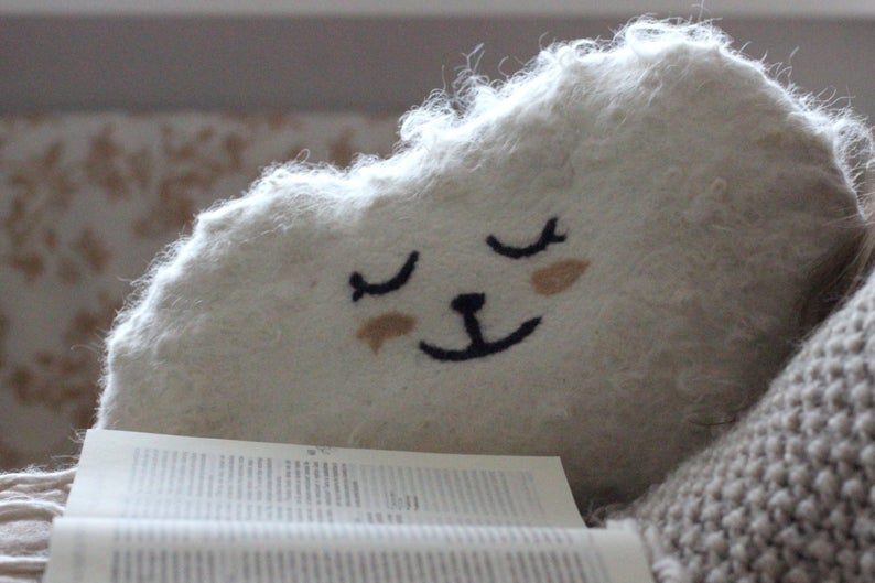 - Coussin nuage en laine feutrée, réalisé à la main, AgnesFelt sur Etsy, 55 euros