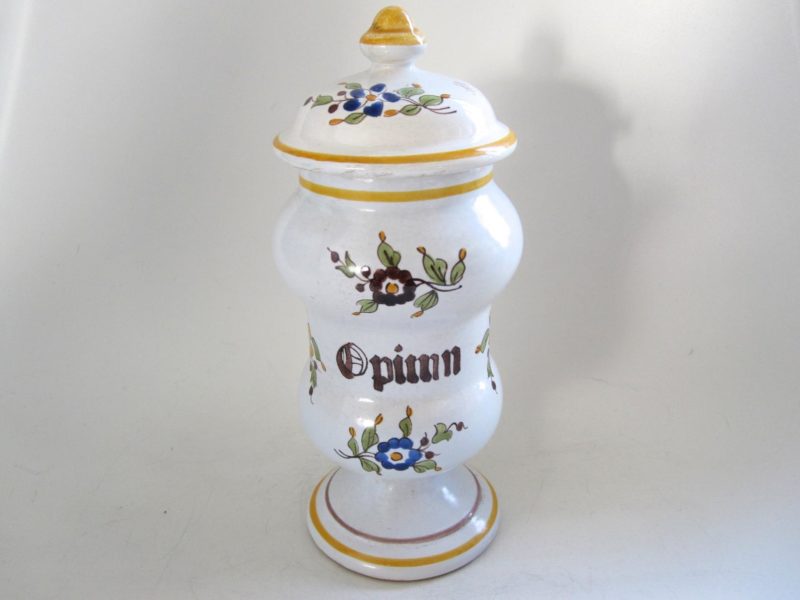 - Pot de pharmacie en faïence Desvres Signé Gabriel Fourmaintraux, Tradition Moustiers (rien que ça !), French Window Boutique, 170 euros
