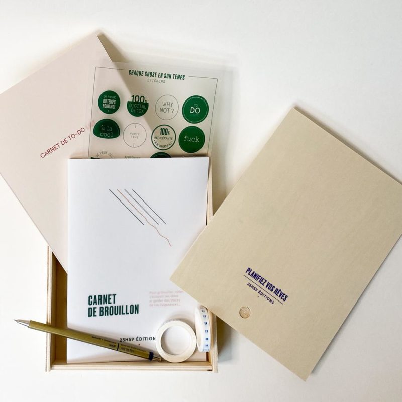 • Set Organisation, aux papiers choisis pour leur confort d’écriture et les normes éco-responsables des fournisseurs, fabriqués en France et au Portugal, 23heures59, 42 euros