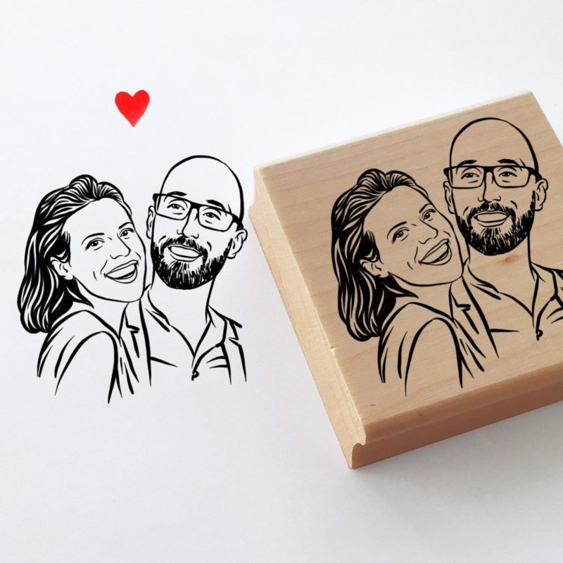 • Oui je vous l’accorde, ce tampon personnalisé à l’effigie de votre couple fait à la main est légèrement cheesy mais pourquoi pas après tout ! A shopper sur la boutique Etsy de LiliMandrill 120 euros