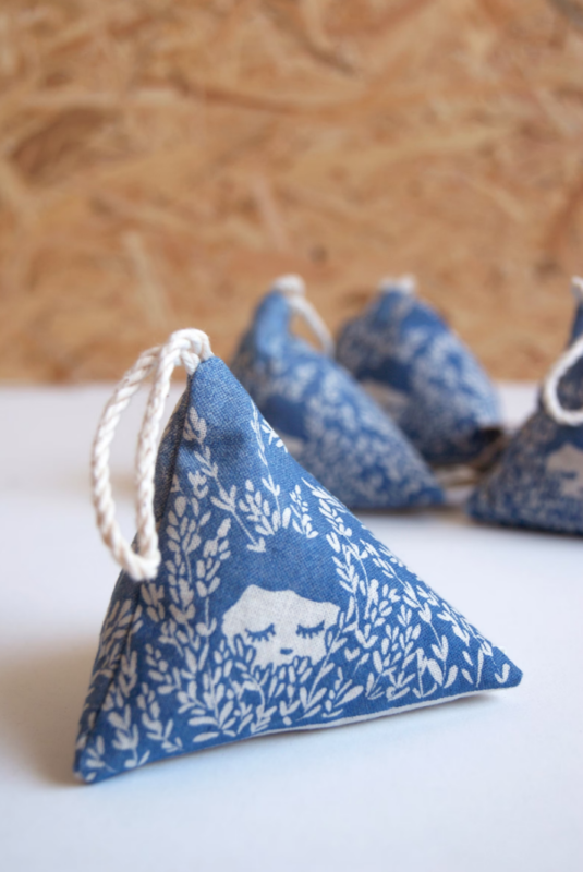 - Sachet de lavande pyramide en coton et linogravure, Marine Mastin Design*, 14 euros