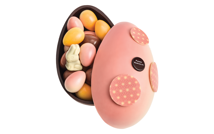 • Oeuf chocolat noir garni de petits oeufs, Pierre Marcolini