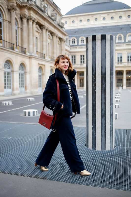 Le tombé du pantalon est top et les bottines je les kiffe ! 🙂 Toujours ce petit air malicieux sur les photos, ça te va bien.