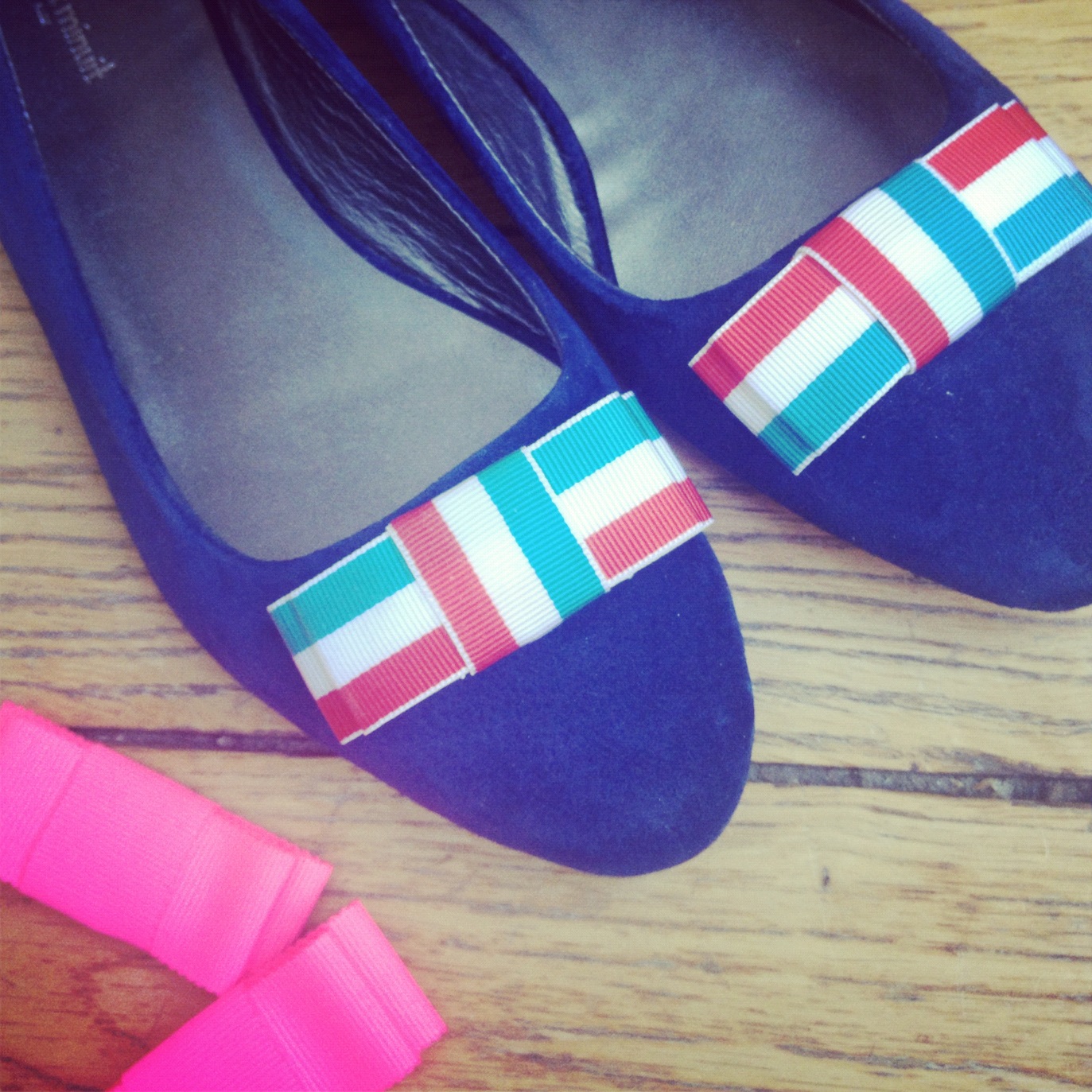 Super idée !!! pour une fan de ballerine comme moi, c’est vraiment génial 🙂 j’aime bien les nœuds tricolores !!!