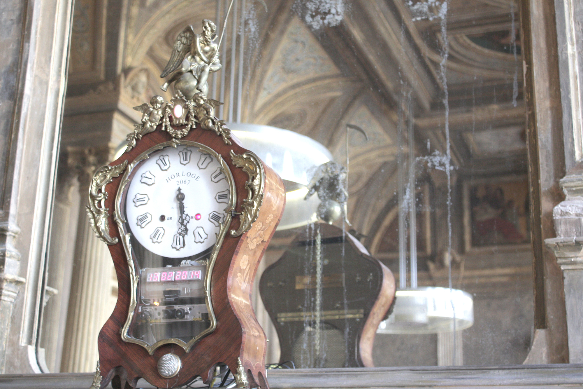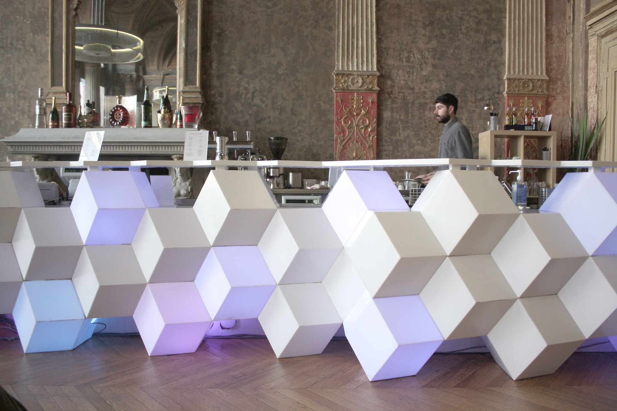 D’abord, il y a les lieux, donc. Imposants, magnifiques, contrastés : les plafonds, immenses, laissent courir sur leurs flancs des peintures du XIXème siècle qui jouent avec ces énormes abats-jours contemporains.