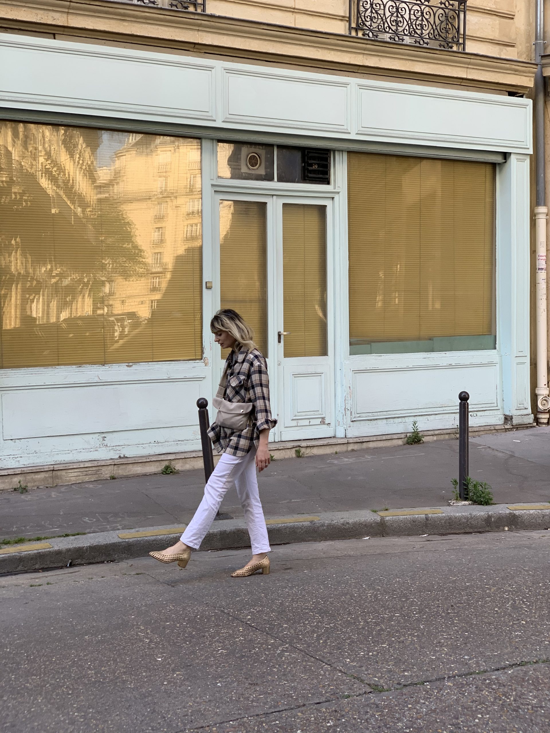 Toujours est-il que la veille de son déménagement, nous avons profité des températures clémentes pour faire une dernière pause dans le quartier avec ma Virginie et immortaliser nos derniers souvenirs parisiens avant d’en créer de nouveaux entre Paris et Bordeaux. Je voulais vous montrer cette chemise et cette banane que je ne quitte plus : la première est un indispensable de nos placards, on la porte l’été avec un simple tee shirt, l’hiver en glissant un pull chaud dessous. J’espère la garder des années ! La seconde est une petite obsession depuis quelques années maintenant et son côté pratique vont me la faire aimer longtemps, elle aussi.
