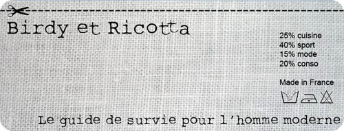 Birdy et Ricotta est un blog de mec. Un blog à la plume drôle et soignée. Un blog de mec qui aborde des sujets de société, de mode, de cuisine.