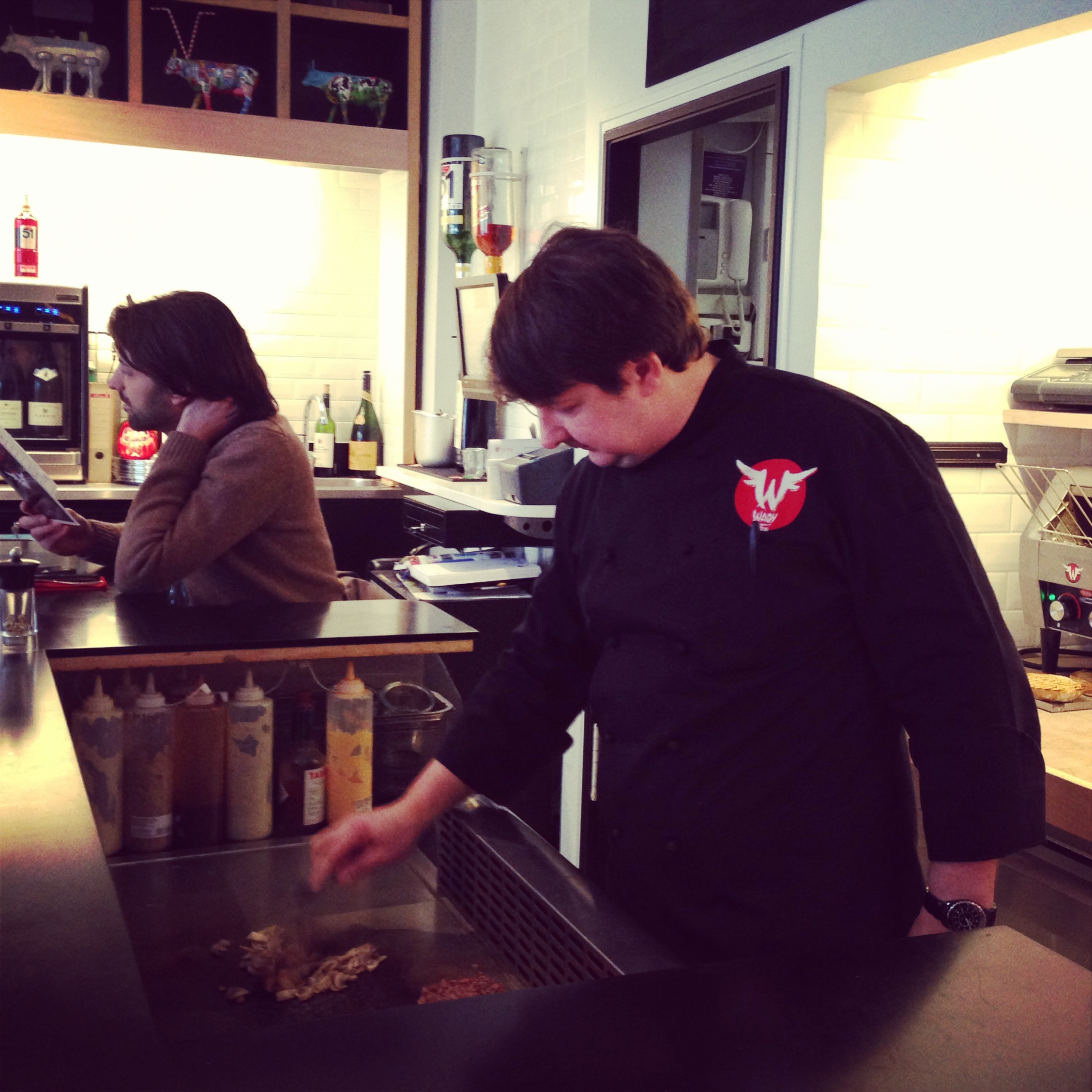 Les babines en ébullition, je me suis dit que c’était dommage, quand même, de laisser passer cette seconde chance de pousser la porte de ces lieux, et de vérifier par moi-même de quoi il retournait exactement. Bien m’en a pris : je ne saurais dire si l’on tient là le meilleur burger de Paris, je ne suis pas assez calée sur le sujet. Mais, assurément, l’adresse vaut le détour. A plus d’un titre.