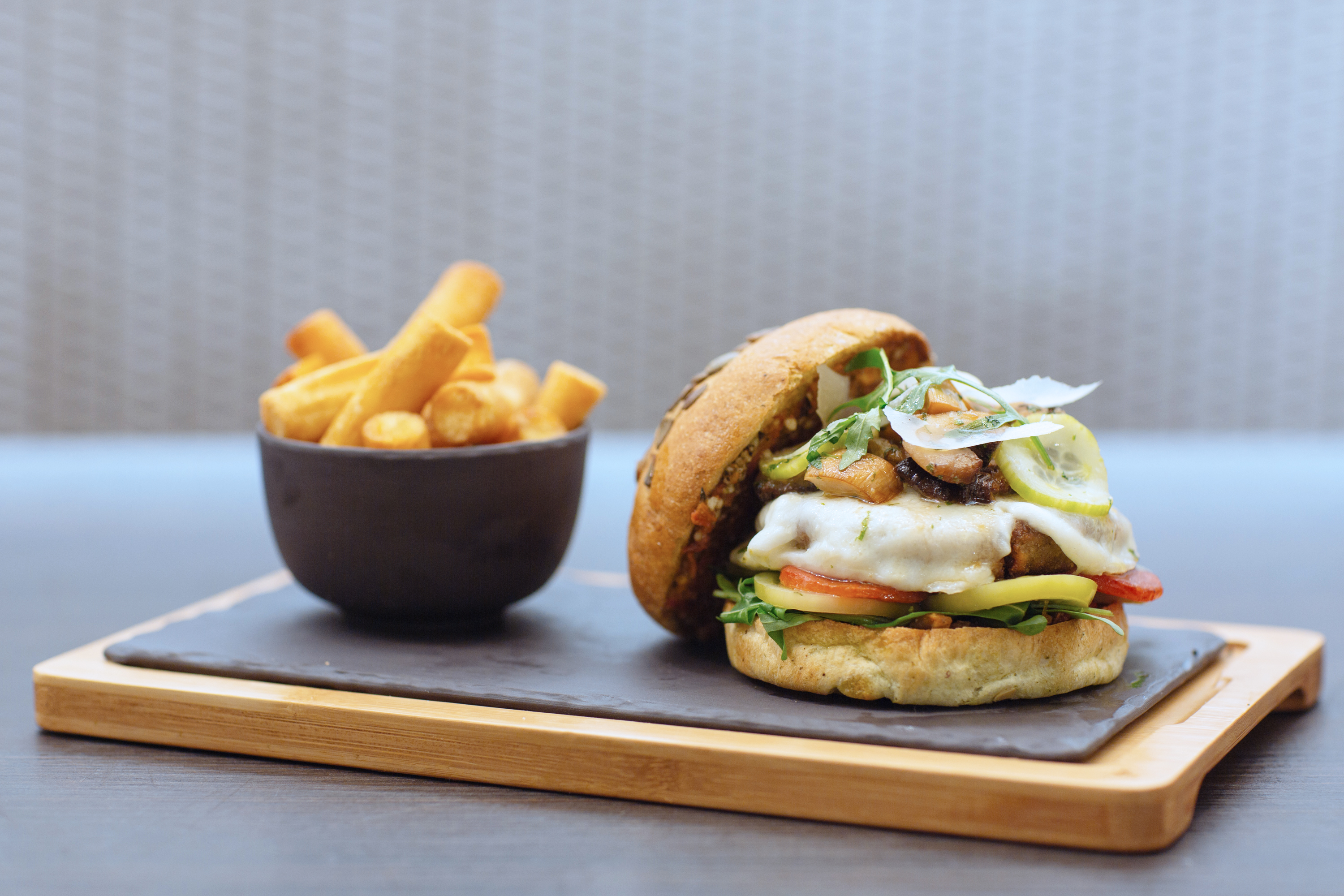 Le steak de caviar d’aubergine est extrêmement savoureux. Il fond sous la langue et se marie divinement bien avec la mozzarella di Buffala. Les cèpes créent la surprise et réveillent ce qui aurait pu être un burger un peu plat en terme de saveur, peut-être, autrement. De quoi mettre tout le monde d’accord !