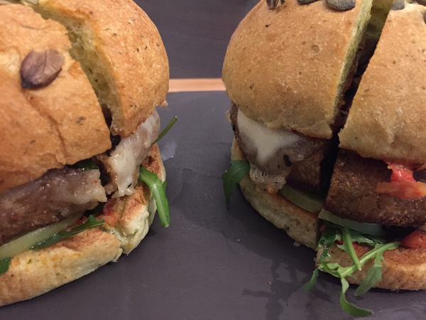 Mon préféré est indéniablement le hamburger végétarien. Déjà, parce que je n’aurais pas deviné une seule seconde qu’il s’agissait d’un burger végétarien. Ce qui est globalement un bon point. Mais aussi parce que je côtoie quelques végétariens qui souffrent régulièrement de ne pouvoir trouver des pistes dignes de ce nom. Et voilà.