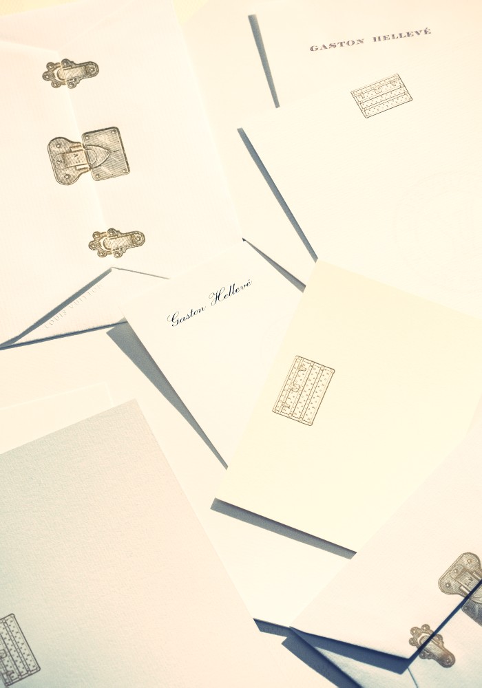 Et puis, il y a l’écriture version 2013. A l’heure ou les claviers prennent de plus en plus le pas sur nos manuscrits, la Maison Louis Vuitton propose moult papiers et instruments d’écriture : des cartes de visites à personnaliser, des encres au nom presque magique, des papiers filigranés, riches, épais.
