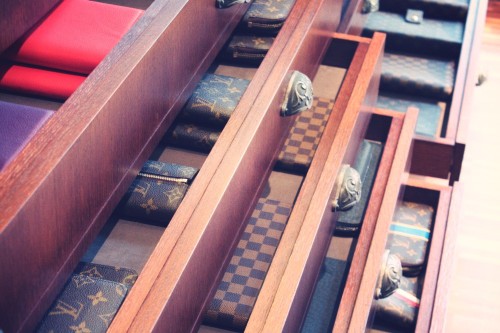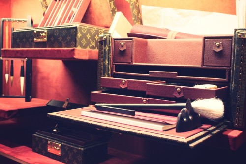 Côté patrimoine, j’ai aimé découvrir les pièces historiques issues des échanges entre la Maison et ses illustres clients, mais aussi les trésors de papiers, instruments d’écriture, correspondances amassées notamment par Gaston-Louis Vuitton, le petit fils de Louis Vuitton. Bibliophile et collectionneur insatiable, on doit en effet à ce passionné de lecture et d’écriture une collection impressionnante de missives et autres trésors de musée, parmi lesquels de magnifiques malles dédiées à la correspondances, ou ces coupures de presse qu’il collectionnait sur les meurtres commis dans des malles… Etrange, vous avez dit étrange ?!
