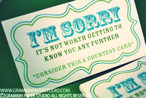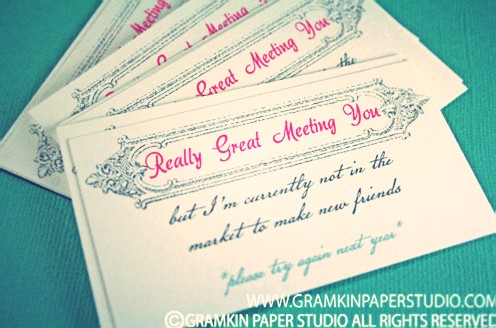 J’adore, les cartes sont magnifiques et originales! Autrement, je connais une personne qui se préparait des cartes de visites, avec de fausses informations, et des adresse bidons.. ça c’est courtois!