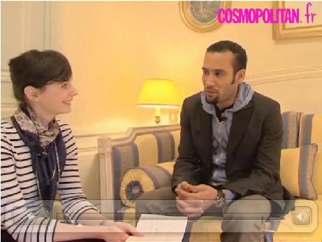 Ton anglais est très bon, voyons 🙂 Est-ce que les questions ont été réenregistrées après l’interview? Le son est un peu différent, et tu ne souris jamais quand tu poses une questions, alors que quand on vous voit tous les deux, tu souris tout le temps, ça crée une différence qui est bizarre… C’est peut-être le format des itw Cosmo…