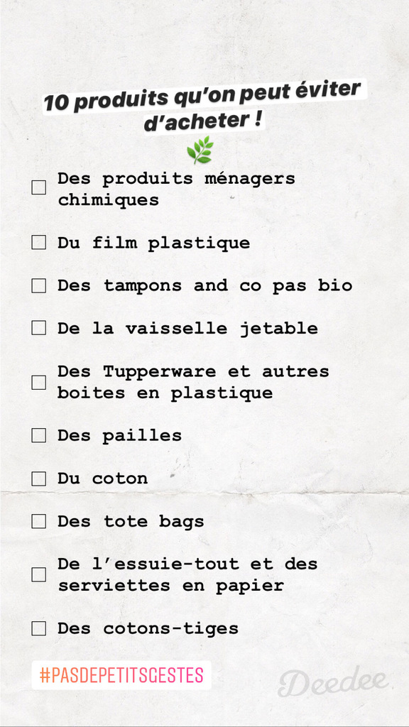 Voilà. On refait le bilan dans quelques mois ? A vous de compléter la liste en commentaires ou d’utiliser le template suivant sur IG si vous avez envie de vous amuser à cocher ce que vous n’achetez plus ou ne voulez plus acheter. Vous allez voir, c’est assez jouissif et gratifiant, comme exercice ! (On n’est jamais mieux servi que par soi-même, il paraît^^)