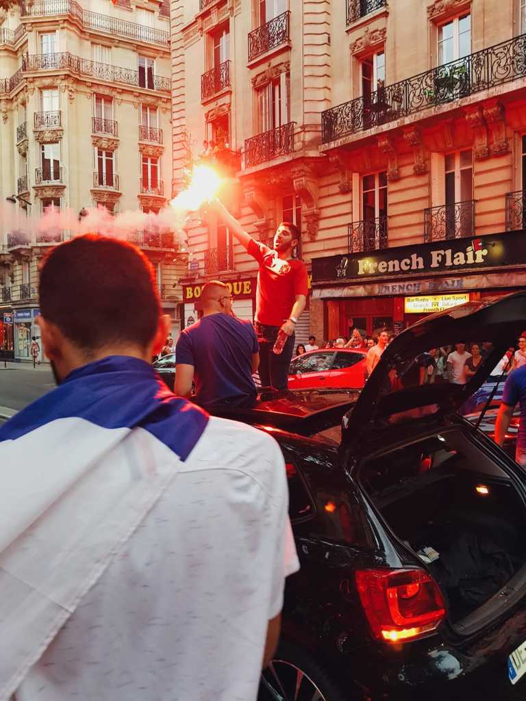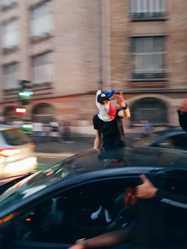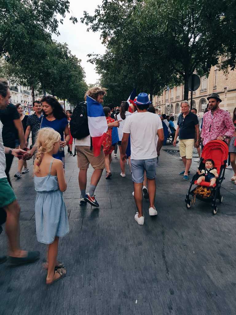 J’étais chez moi et j’ai entendu une personne à la télévision dire que ces derniers temps, les français avaient envahi les rues pour des évènements tragiques et que ça faisait du bien de sortir pour quelque chose de beaucoup plus joyeux. Je ne peux que être d’accord. On est champion !!!! Vive les bleus qui pansent nos bleus
