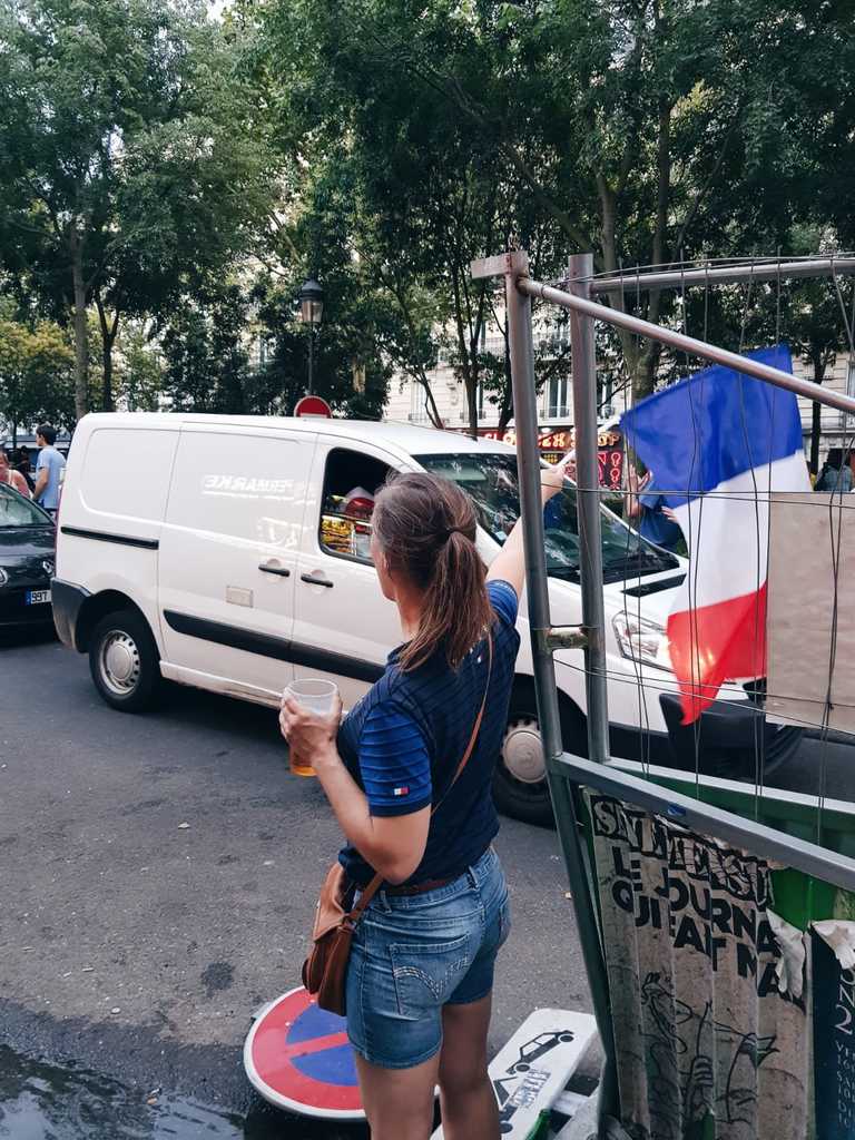 On est les champiiioooooonnnnns !!!! Hier soir, j’ai rejoins pour la seconde mi-temps les copains dans un bar de quartier. Je n’avais pas spécialement envie de voir le match, le foot et moi….!, mais j’avais bien conscience de vivre un moment historique. J’avais envie de le vivre, ce moment, moi qui, 20 ans plus tôt (pour peu que je me souvienne, j’étais pas née), étais privée de liesse populaire et confinée au fin fond de l’Angleterre. Cette fois-ci, je voulais vibrer, moi aussi !
