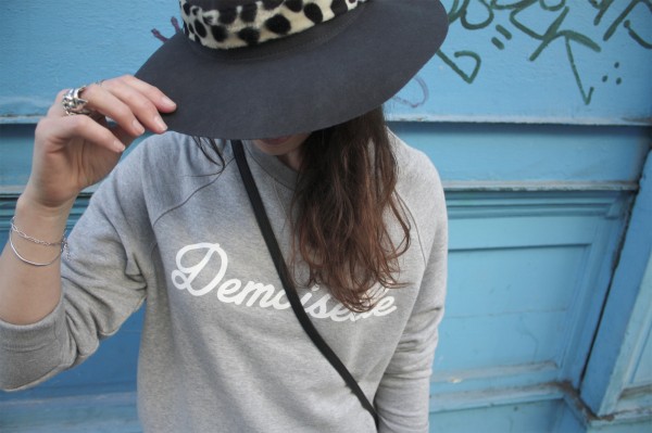 Porté avec le premier sweat crée par l’ultra talentueuse Mademoiselle Pierre (ne me dites pas que vous ne voyez pas de qui je vous parle, moi qui porte ses bagues non stop depuis plus d’un an !), la nouvelle jupe doudou de Gaston, les bottines à croquer signées Sézane et une gourmette Félicie Aussi bien sentie pour toutes les connasses de parisiennes qui se respectent, ça donne une tenue plutôt wow et paradoxalement assez simple à assumer !