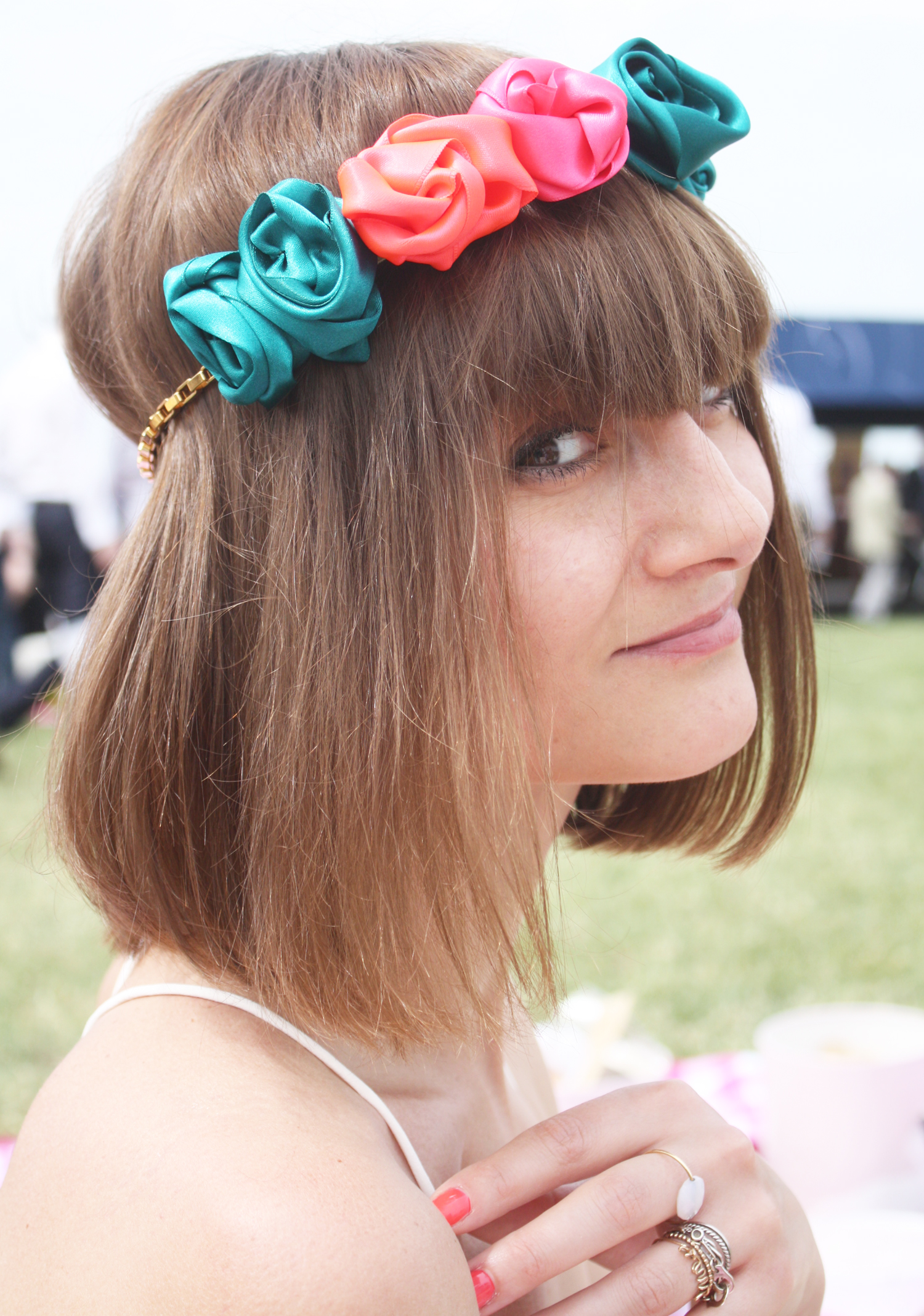 Or donc, dimanche dernier, les équipes de feu la Jolie Box et désormais BirchBox nous ont invitées Audrey, Nadia et moi à passer un après-midi au Prix de Diane. Moi qui avais tant aimé cette course quand je l’ai découverte, il y a déjà 3 ans… !, j’ai sauté sur cette occasion pour avoir le plaisir de dégainer un chapeau complètement foufou : une capeline incroyable dénichée pour l’occasion chez my beloved Mademoiselle Chapeaux, garnie d’une énorme couronne de fleurs et d’un oiseau tout de strass vêtu. Ah ça, quand je fais les choses, c’est sûr, je ne les fais pas à moitié !