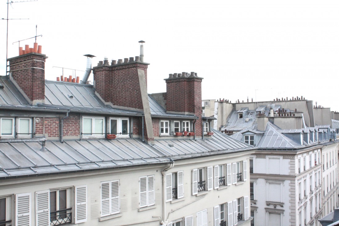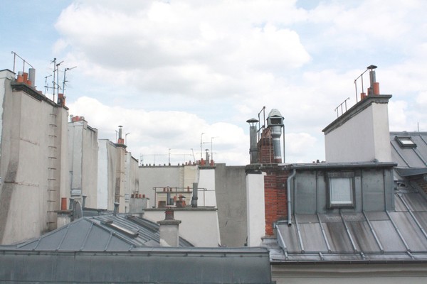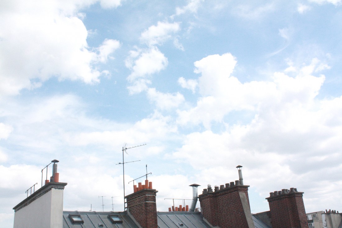 Bon, alors oui bon, je vous l’accorde : encore faut-il avoir un balcon. C’est mon rêve absolu. Je veux dire, d’en avoir un vrai à moi. Rapport que celui où j’ai pu faire ces photos n’est pas tout à fait le mien, mais celui de mon bureau (que vous voyez pour la seconde fois en deux jours… !). N’empêche : même à moitié mien, même en enfilade, je chéris ce balcon qui m’offre une vue à nulle autre pareille chez les voisins, oui, mais aussi sur ces toits que j’aime tant. Et sur le ciel ; entre deux mails ou après une tâche particulièrement difficile, il suffit de se caler dans le fauteuil ou dans le transat et de regarder le ciel