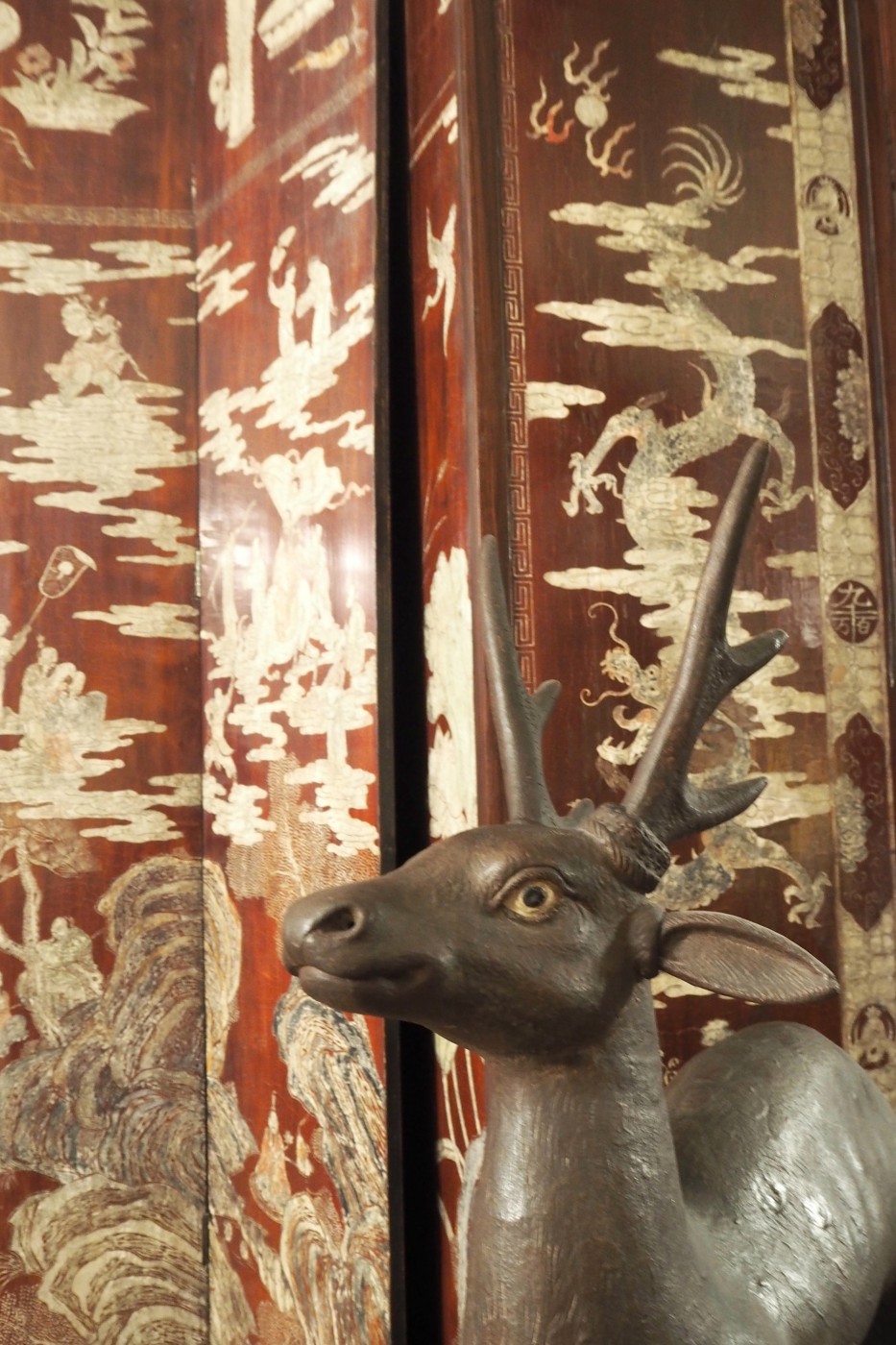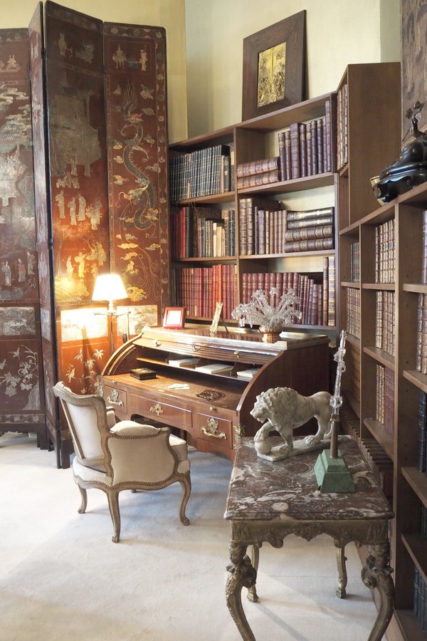Ce second salon, attenant au premier, est plus petit, plus intime. Là encore, on retrouve les paravents plaqués aux murs. Et cette atmosphère indéfinissable…