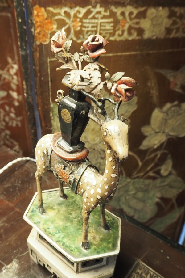 Il recèle un nombre incalculable de symboles : croix, Budhha, lions, cartes de tarot divinatoire, épis de blés, pampilles de lustres érigées en bibelots… impossible de les recenser ici en quelques mots.