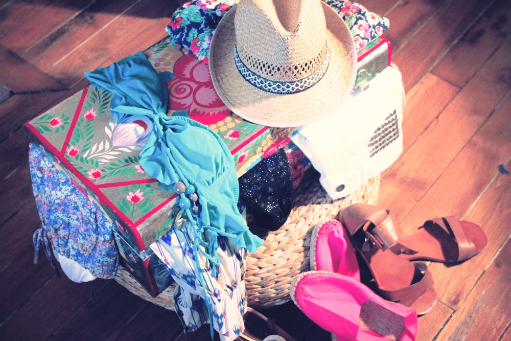 Deux ou trois maillots (alors que je n’en porterai qu’un seul pour éviter les marques de bronzage), douze paires de chaussures (j’exagère à peine…).