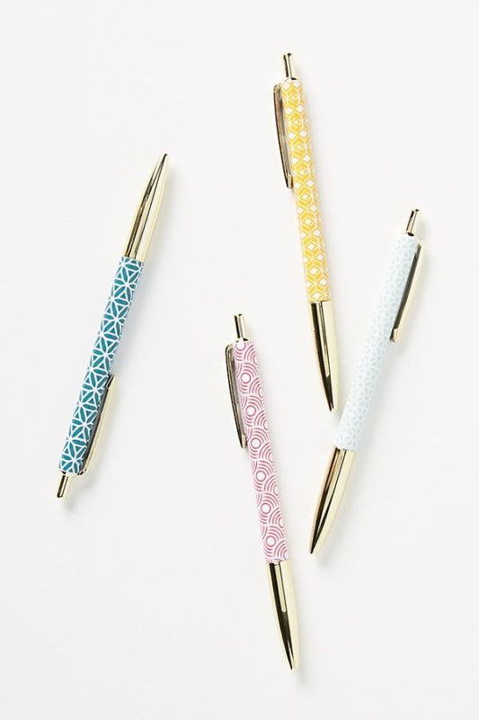- Le lot de 4 stylos à imprimés géométriques d’Anthropologie