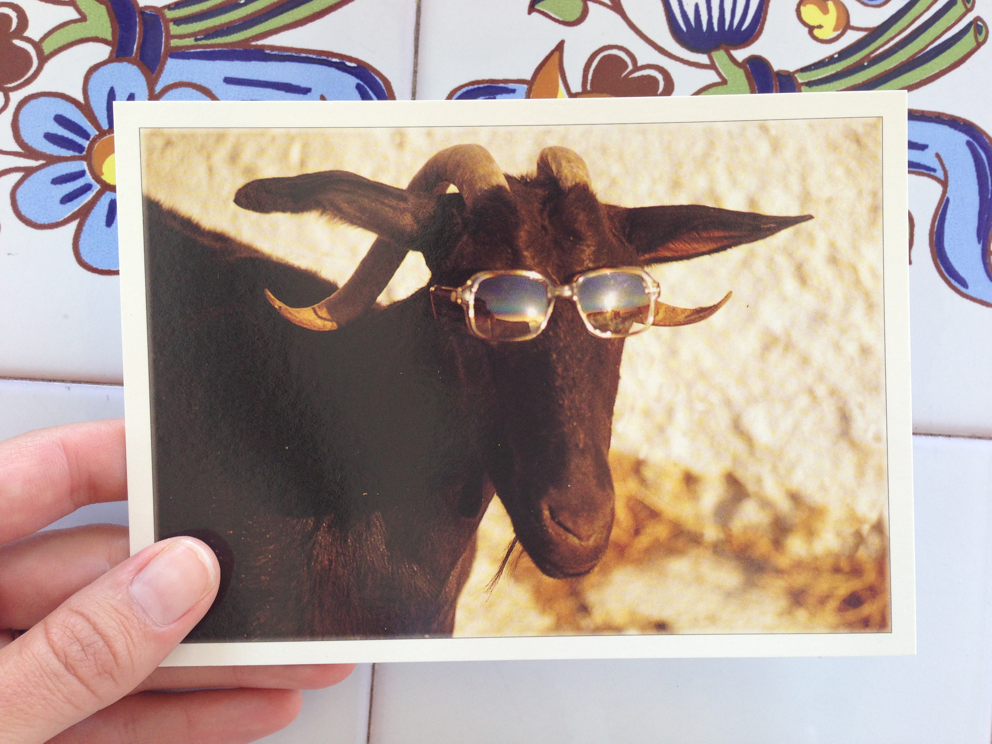 Oui, je dirais Tunisie aussi… Il n’y aurait pas un morceau de tente berbère dans les lunettes de soleil de la chèvre ? (les experts, toussaaaaa)