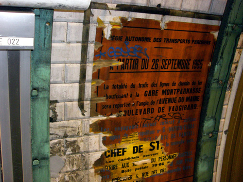 J’adore tomber sur les secrets des stations en travaux ! A Villiers, il y a quelques mois, j’ai découvert, une fois les vieux carreaux enlevés, une très vieille affiche qui avait fait quasi corps avec le béton, j’aurai dû prendre une photo… (aahh la vie de l’époque sans iPhone !)