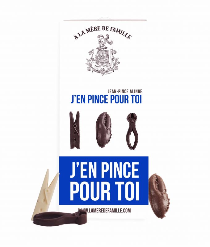 - Chocolats « J’en pince pour toi », A la mère de famille