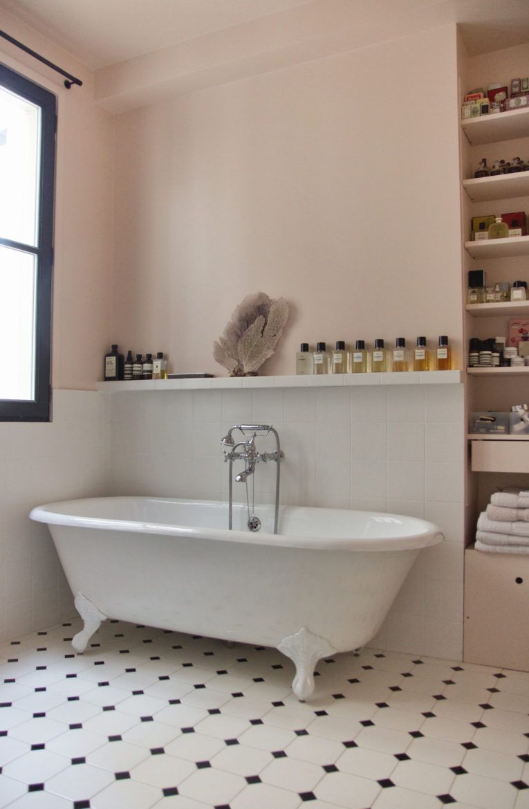 Le grain de folie dans « ma » salle de bain a été de ne pas tirer une croix sur la baignoire même si dans les faits, je prends peu de bain, mais de la garder pour la garnir de coussin et pouvoir m’y installer pour bouquiner. Ouiiii on parle de rêve je rappelle ! Dans la même veine,  j’ai bien aimé l’idée d’y intégrer une bibliothèque. Ça ne marche que si la pièce est grande et bien ventilée mais pourquoi pas !