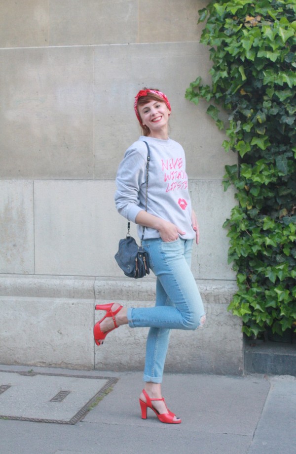 Très « pin up moderne » ce petit look! Et les talons rouge cassent le côté sportswear du sweet…c’est frais et très réussi 😉