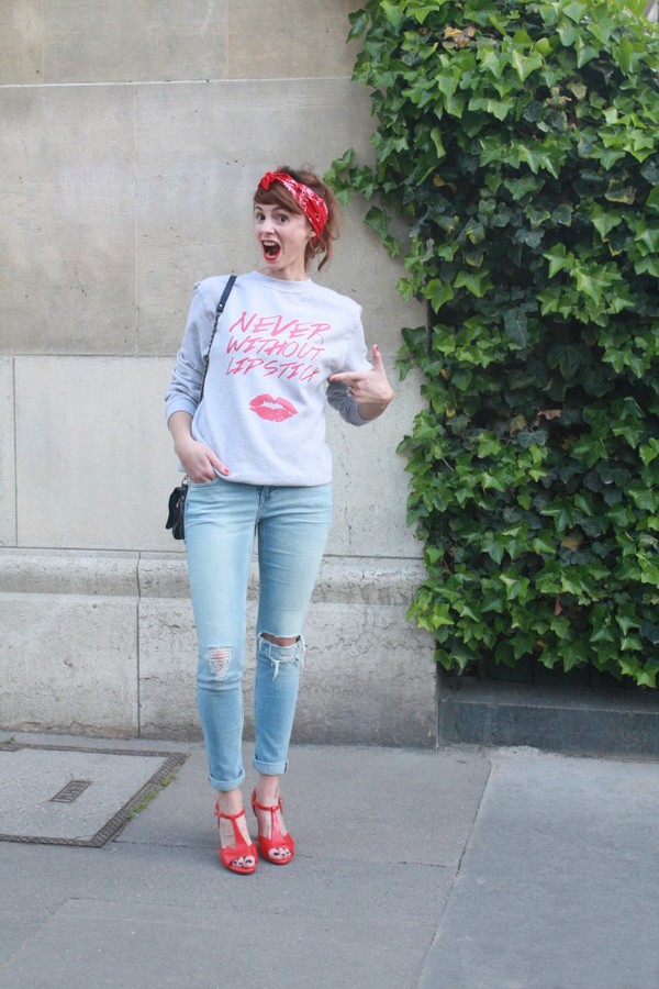 très sympa avec le bandana rouge! j’ai très envie de copier littéralement, mais c’est mal n’est ce pas?