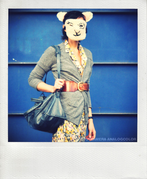 Robe H&M // Ceinture Vintage appartenant à Morgane // Collants H&M // Chaussures Claudie Pierlot // Gilet Mon Truc Fétiche // Sac Balenciaga // Gaston Emmanuelle Esther