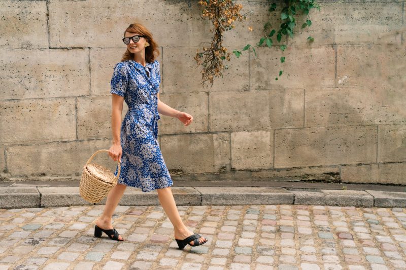 Quand j’ai vu cette petite robe croquignolette à souhait, j’ai su que c’était elle, la petite robe facile à vivre que je cherchais : un brin rétro, juste ce qu’il faut, parfaitement coupée, longueur idéale, elle se porte avec des baskets, des nus pieds, des sandales… C’est évidemment ma nouvelle BFF et si elle se prête bien à un usage urbain, je compte bien la glisser dans ma valise de l’été (gniiii J-quelques !).