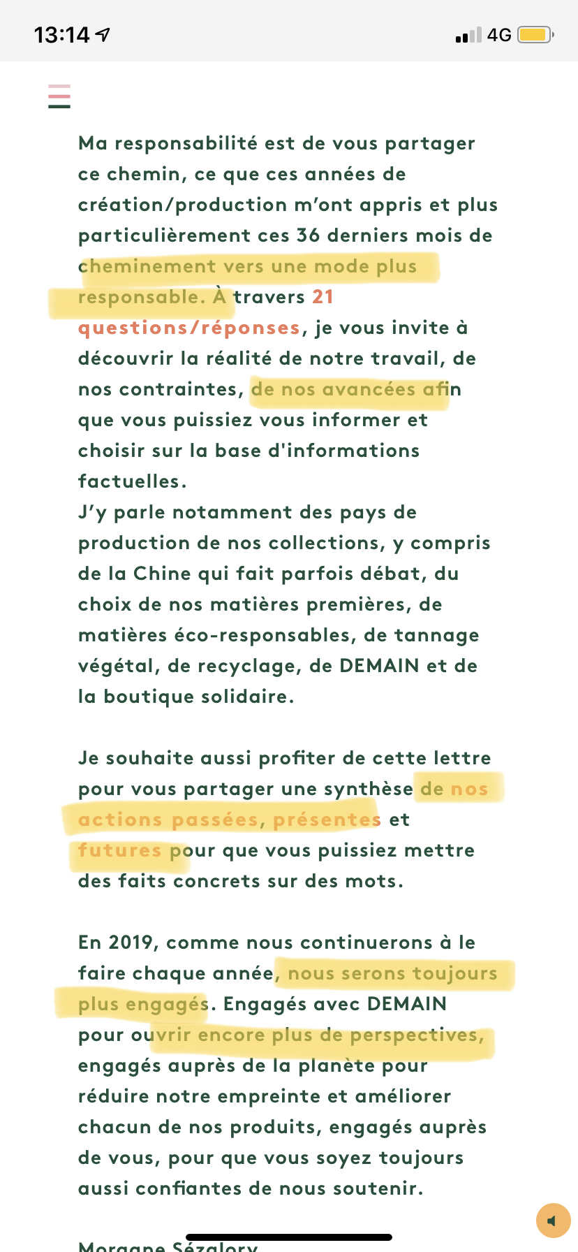 Perso je n’achète pas Sézane mais j’ai suivi l’affaire. Ce qui m a dérangée c est l argument pas le temps alors que la marque prend le temps de répondre à tout un tas de commentaires sur Insta… et enfin on a l impression qu ils ne sont pas « en transition » pour etre clean mais qu ils le sont. Donc évidemment en tant que client.e on attend qu ils le soient vraiment et in se pose des questions…