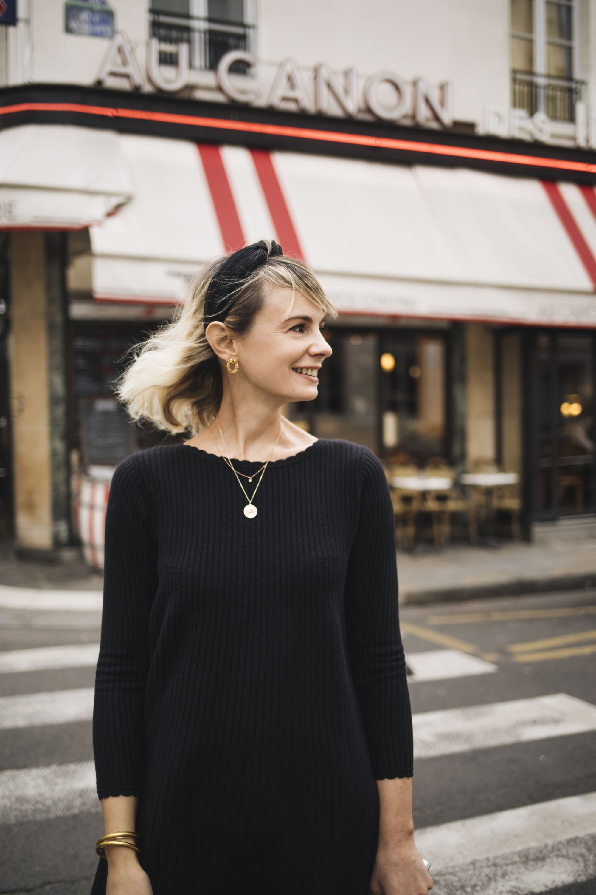 Je profite du fait que ce soit une robe Sézane pour aborder ici le sujet de l’éthique de la marque. Je ne travaille pas pour le marque, je ne suis pas rémunérée pour mettre en avant les pièces que je commande. Je suis une cliente fidèle depuis l’avant Sézane, aka Les Composantes. La première fois que j’en ai parlé, c’était en… 2007 ! J’ai tout de suite été séduite par l’inventivité et la magie que Morgane, longtemps seule et désormais entourée d’une belle équipe, a su et sait insuffler à la marque. Dès le début, j’aimais cette idée de faire du neuf avec du vieux retravaillé, puis de rationaliser sa penderie en misant sur les basiques : les toutes premières collections de Morgane tournaient déjà autour des incontournables de nos penderies avec justement… une petite robe noire ! (Paye ta photo d’une autre vie…)