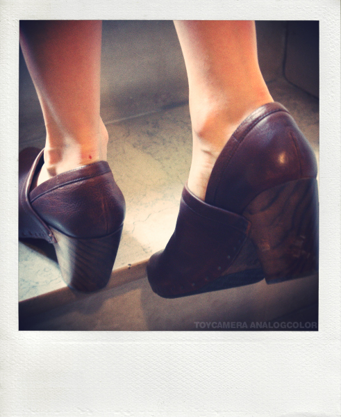 je ne suis pas encore convaincue mais cette version de sabots est portable ! (déjà y’a un truc qui tient le talon donc même moi très maladroite je devrais ne pas trop choir… alors qu’avec des vrais sabots je devrais etre sponsorisée par hansaplat!!!)