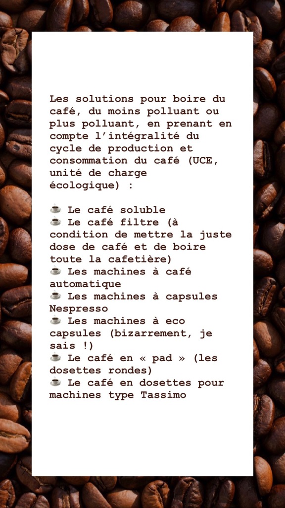 Pour finir, le meilleur déchet est évidemment celui qu’on ne produit pas et à ce train là, c’est toute notre consommation qu’il faut revoir : le café tout court n’est pas très green friendly (tu peux lire aussi le passage du livre de Fred Vargas à ce sujet).