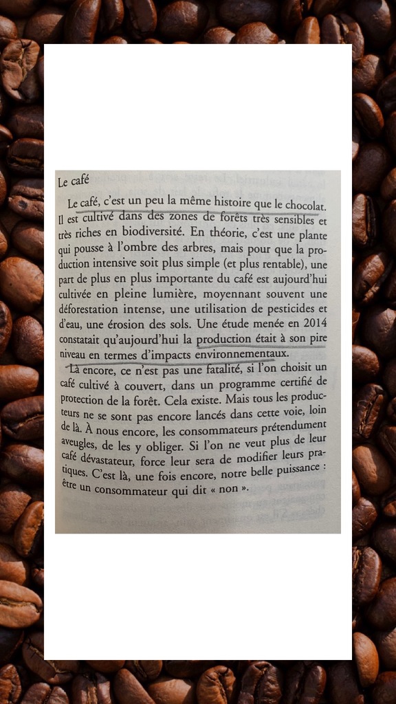 En réalité, je vais jouer un peu les rabats-joie (sorry !) mais il faudrait sacrément lever le pied sur le café. C’est notamment ce qu’explique Fred Vargas dans son livre « L »humanité en péril, virons de bord, toutes !« , je vous mets directement l’extrait :