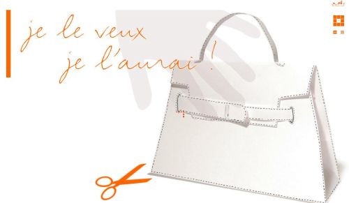 Sinon, vous pouvez aussi aller sur le site d’Hermès et télécharger un patron du sac à main. Une bonne feuille de papier, une imprimante couleur, une paire de ciseaux et du scotch, et hop, le tour est joué, à vous le Kelly !