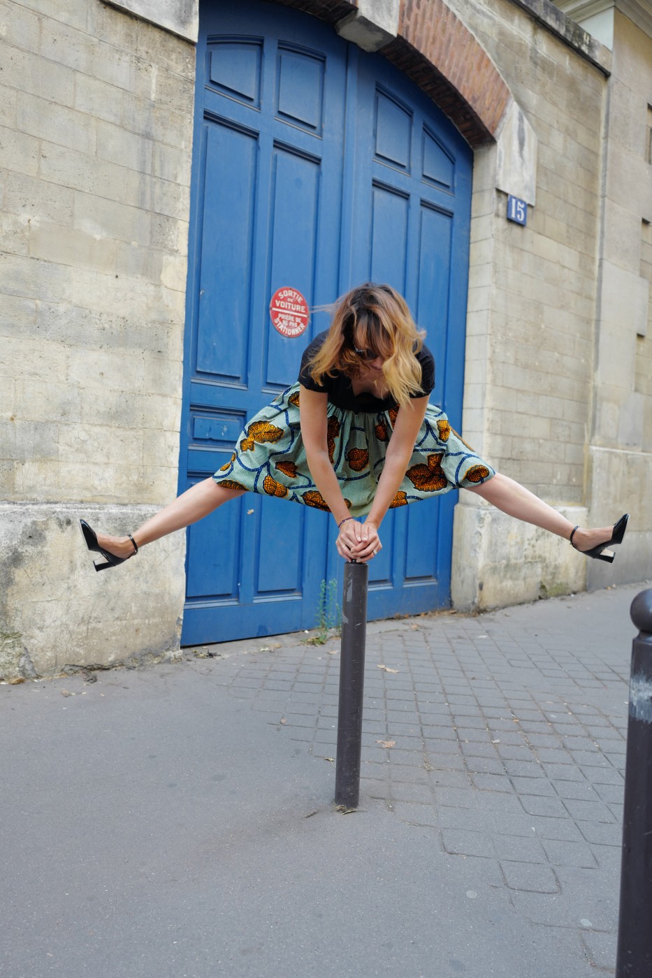 Ah parce que vous croyez que faire des photos de looks, c’est facile ?! Je donne de ma personne, moi ! Pour la petite blague, je me suis foulé la cheville 2 minutes après cette photo en sautant d’un rebord de fenêtre à 2 mètres et quelques… No comment, hein.
