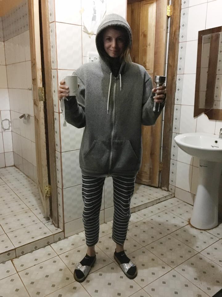 Et le meilleur pour la fin (ok, ça n’était pas précisément une photo de look, mais elle est tellement parfaite…!) : c’était en Tanzanie, dans le deuxième camping carrément luxueux par rapport au premier (toujours pas d’eau chaude, MAIS des toilettes normales, de la lumière et des sanitaires à peu près propres). On a tellement, mais tellement ri avec mes comparses de voyage.. !